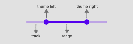 4. 이 때 진짜 슬라이더는 2개지만 겹쳐놓고, thumb 두 개가 모두 활성화되도록 한다.(pointer-event: all)