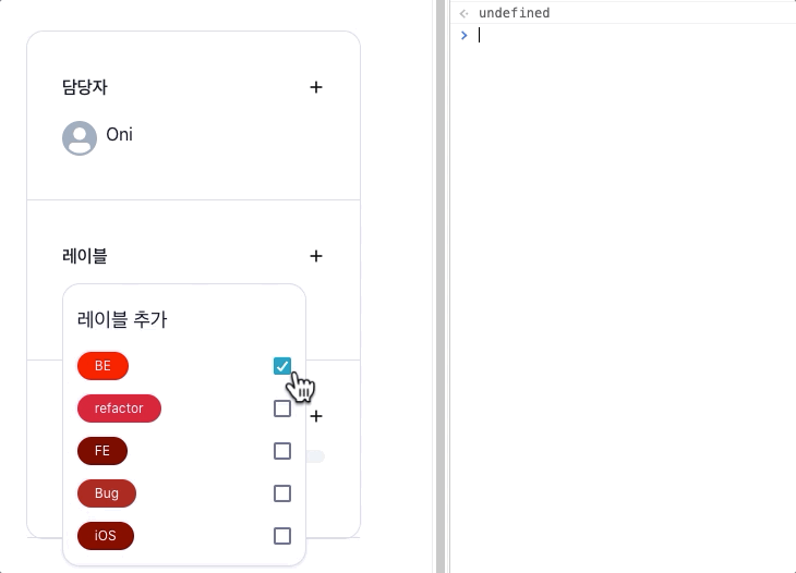 생각 : ui 라이브러리를 사용하지 않고, 직접 짰다면 label을 이용해서 쉽게 해결할 수 있는 문제인데.. 만들어진 걸 가져다 쓰려니까 내가 주는 className이나 data-id값이 어디에 저장되는지 알 수가 없어 많이 헤맸다.