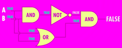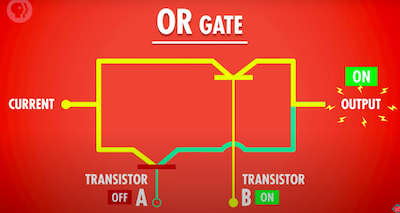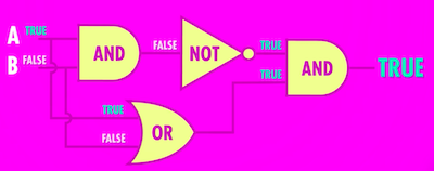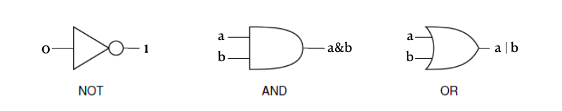 이진수를 사용하는 다른 이유 중 하나는 수학 분야에서 이미 존재했던 참과 거짓을 다룬 분야가 있었기 때문. 그 수학 분야는 참과 거짓을 조작하는 데에 필요한 규칙과 연산방법을 모두 알아냈다. 이것은 '부울 대수학'이라 불린다. 일반적으로 생각하는 수학의 변수는 숫자이고, 연산은 덧셈, 뺄셈, 곱셈 등등이 있다. 부울 대수학에서 변수는 true, false이고, 연산은 논리이다. 여기에는 NOT, AND, OR이라는 핵심 연산이 있다. 흐름을 통제한다는 뜻에서 게이트(gate)라고 부른다.