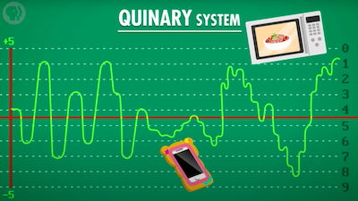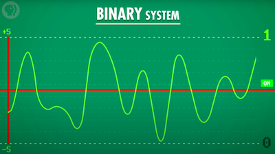 초기의 전자 컴퓨터는 3개의 상태를 갖고 있는 3진법을 사용하거나 5진법을 사용할 수도 있었다. 이러한 진법들의 문제는, 중간 상태가 더 존재할수록 그것들을 나누기가 어려웠다는 것이다. 그래서 가능한 한 두 개의 신호를 멀리 배치하고, 단지 'on'과 'off'를 사용함으로써 가장 명확한 신호로 사용할 수 있다.