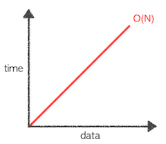 •N개의 원소가 있을 때 알고리즘을 끝내는데 N개의 단계가 필요하다.