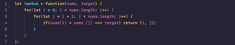 output: nums의 두 숫자의 합이 target일 때 두 수의 인덱스를 담은 배열