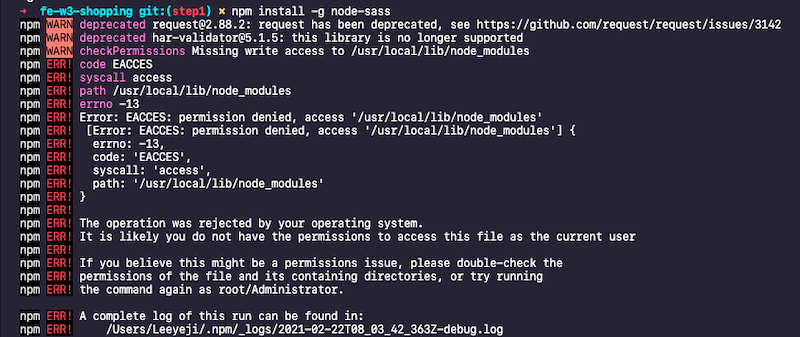3. node-sass, sass 둘 다 설치를 하려는데 에러가 엄청나게 뜬다.