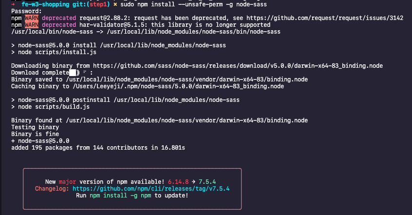 3. node-sass, sass 둘 다 설치를 하려는데 에러가 엄청나게 뜬다.